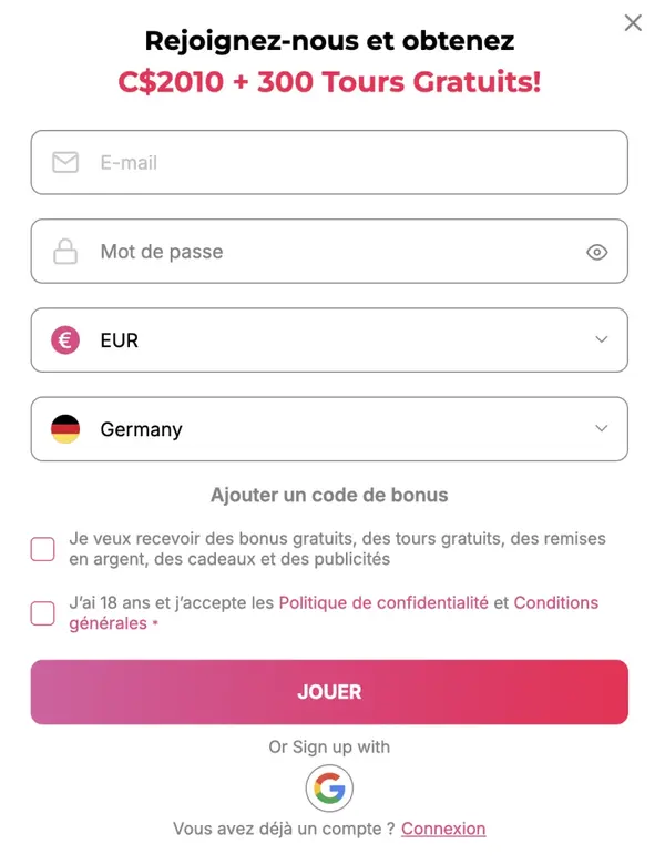 - Saisissez votre e-mail, créez un mot de passe et choisissez votre devise préférée (CAD disponible).